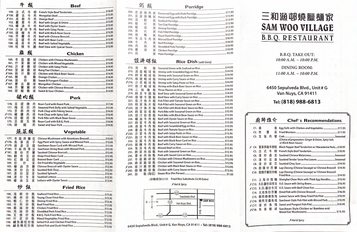 Welcome to Sam Woo Village BBQ, an authentic Chinese restaurant nestled in the heart of Van Nuys, California. If you're on the hunt for a culinary experience that transports you straight to the bustling streets of Canton, look no further. This gem specializes in traditional Cantonese BBQ and offers a rich menu featuring beautifully prepared dishes that satisfy both the taste buds and the soul.